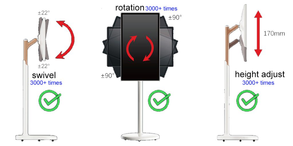 it bears 3000+ times test of swivel, rotation and height adjustment