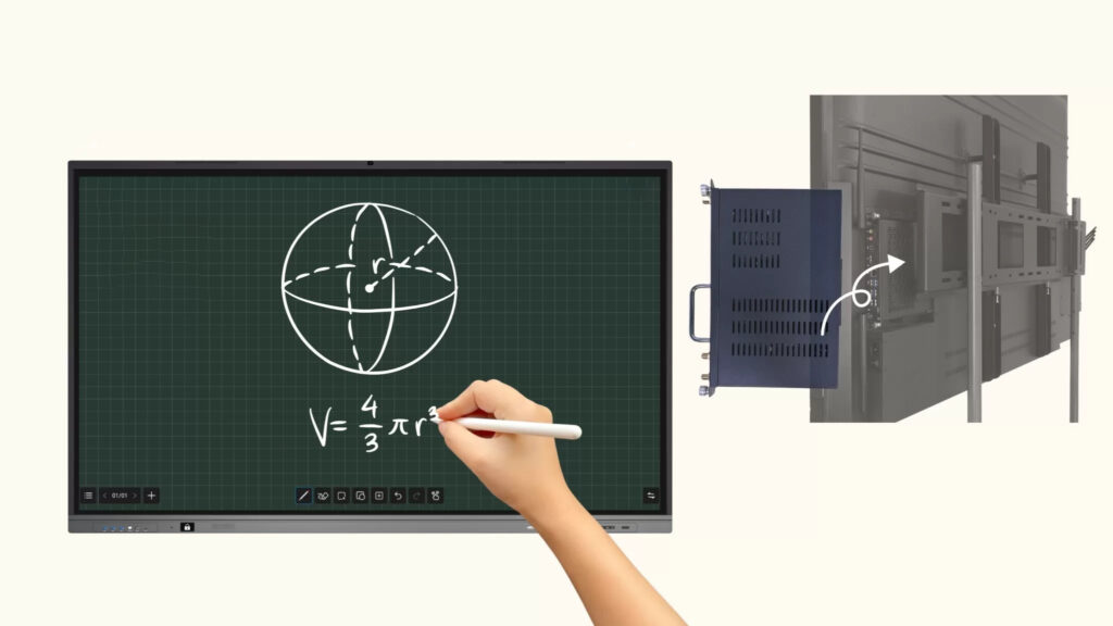 It integrates all the interactive whiteboard functions into this small compact OPS module. Interactive flat panel functions like digital whiteboard, annotation, presentation, wireless screen collaboration, and other functions can be realized.