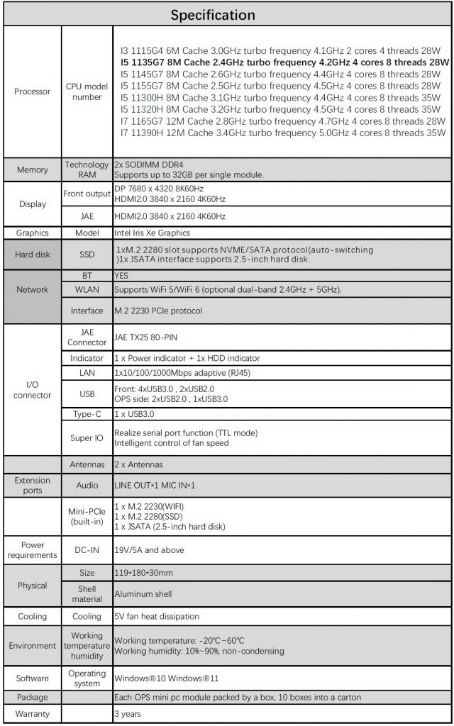 * Supports Intel 11th Gen® Core™ UP3/H series CPUs (I3, I5, I7).